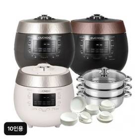 [삼성카드5%할인]쿠쿠 블랙스톤 10인용 밥솥(CRP-R1095FGW/FGB,1015FBB)+퀸나 대용량 스텐 3단 찜기+로얄튜더 엘리자베스 홈세트 12p