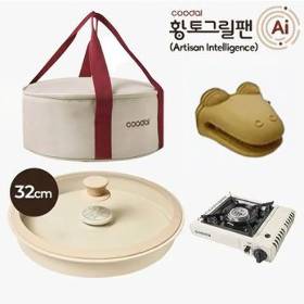 쿠달 황토그릴팬(32cm팬+가스버너+전용가방+실리콘 손잡이)