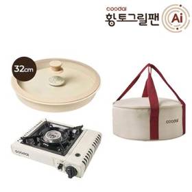 쿠달 황토그릴팬(32cm팬+가스버너+전용가방+실리콘 손잡이)