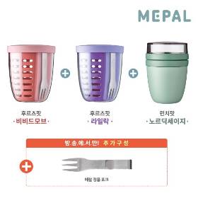 7최유라쇼내일 20:45★단독★ 메팔 후르츠팟 600mlx2개(비비드모브+라일락) + 런치팟 700ml(노르딕세이지) + 방송에서만 미니포크 1개 더